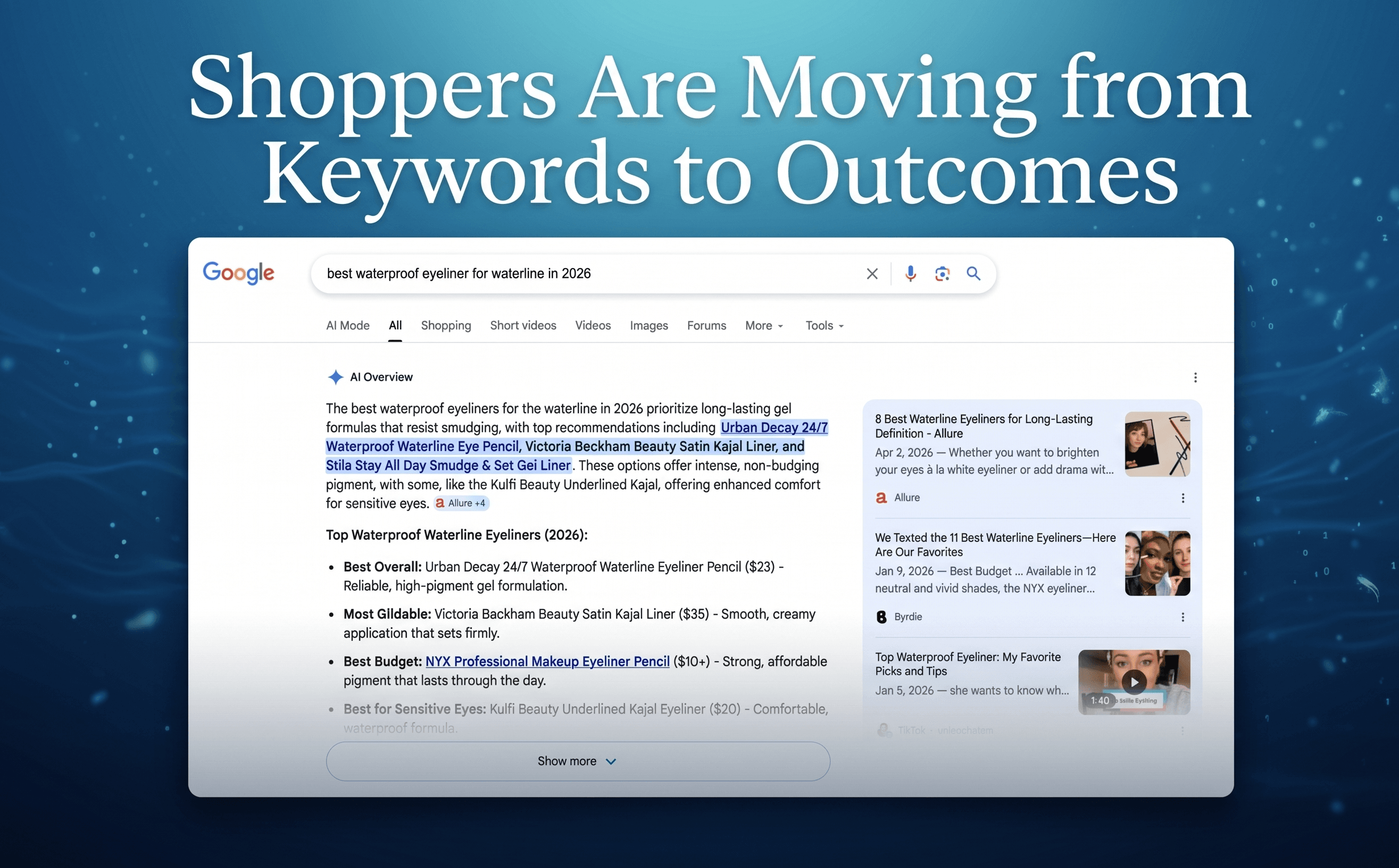 Product, Offer, and AggregateRating JSON-LD schema markup.Shoppers are moving from keyword queries to outcome-driven missions.