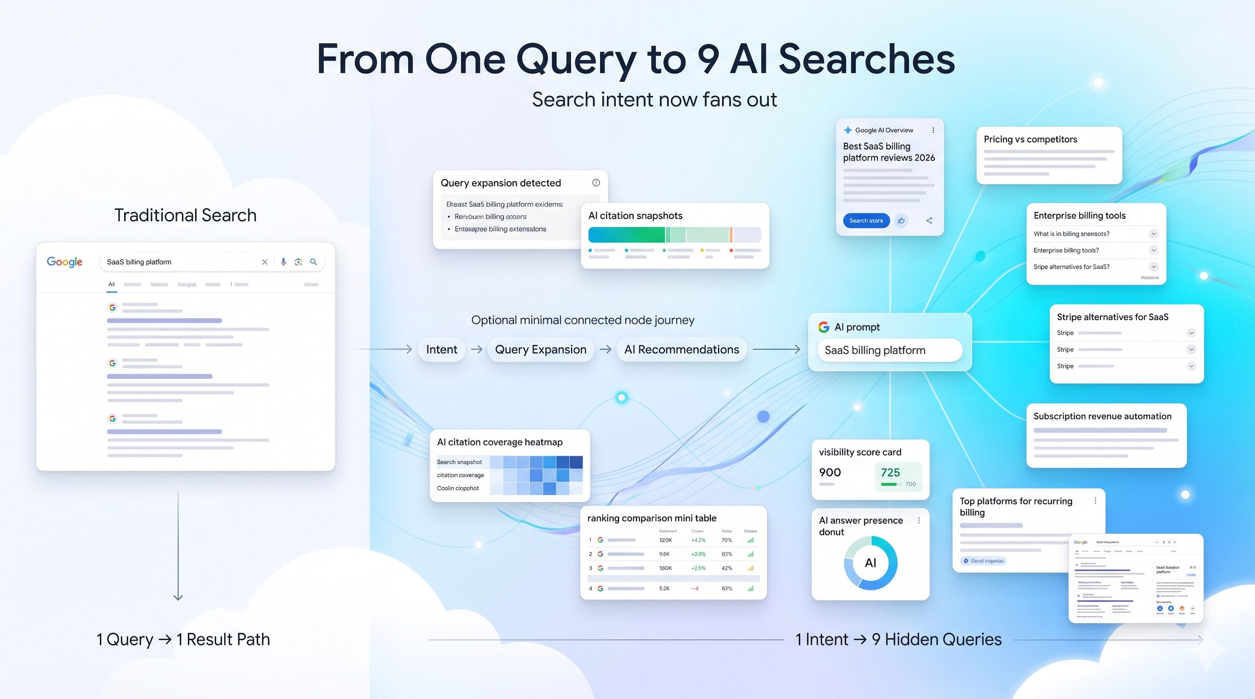 A year ago, a search for "SAS billing platform" was a predictable event. Today, AI engines take a single prompt and fan out into 3 to 9 different queries behind the scenes.